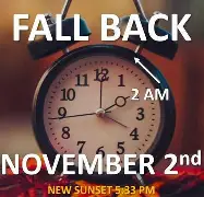 October 29, 2025 By Kendra Scott IT’S TIME TO FALL BACK! Daylight Saving Time officially ends this weekend. Time falls back one hour on Sunday, November 2nd. Enjoy the extra hour of sleep!